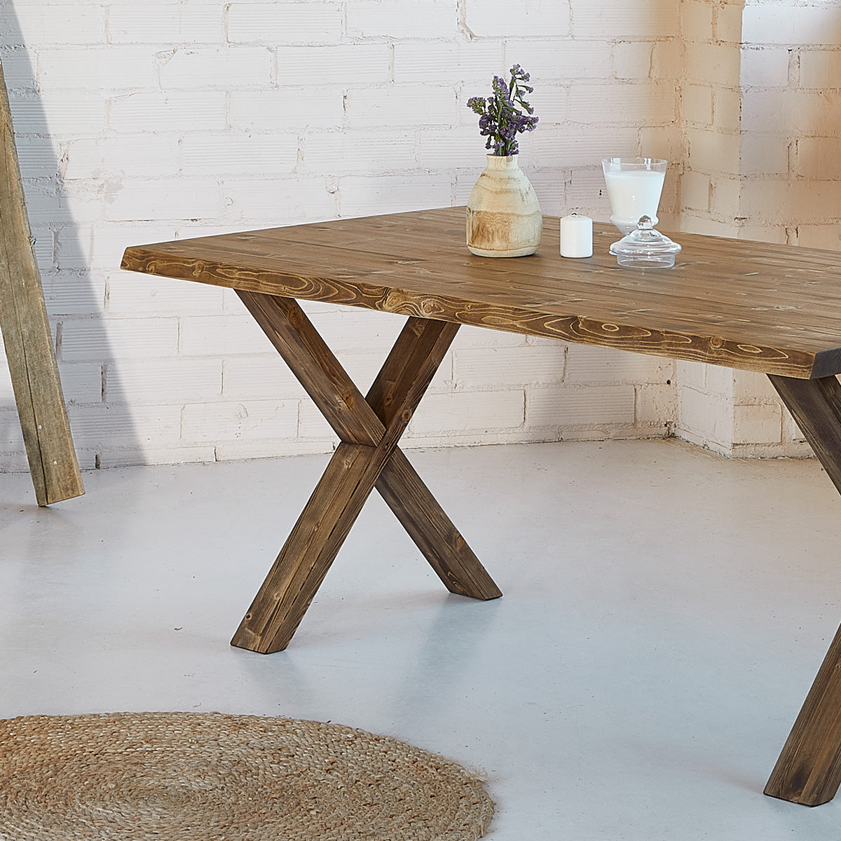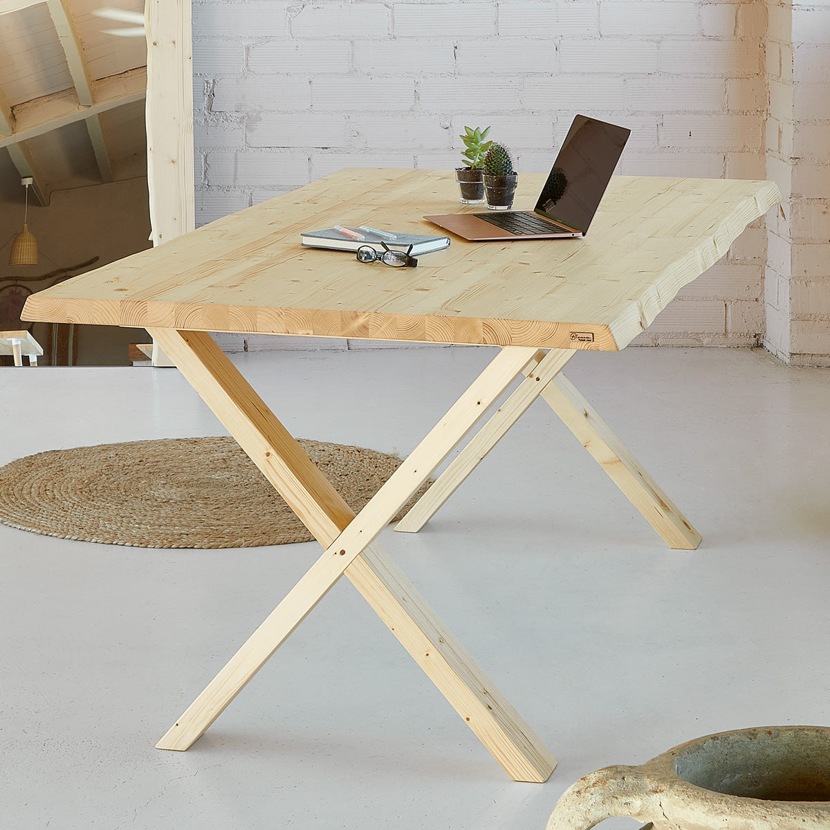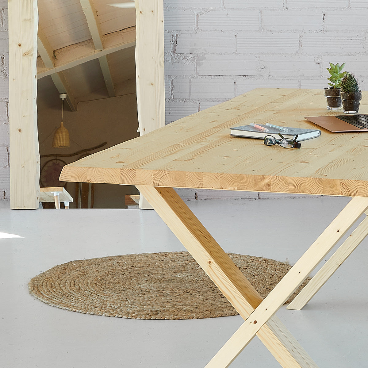 - Contenido: La mesa consta de 1 pieza + 2 patas de madera.