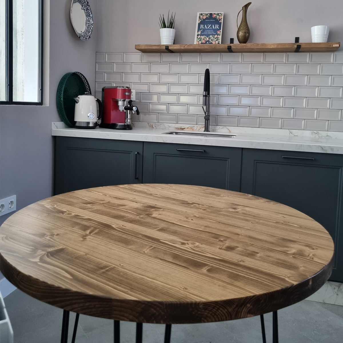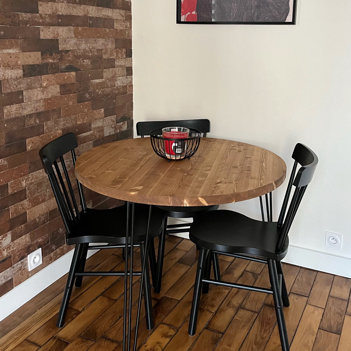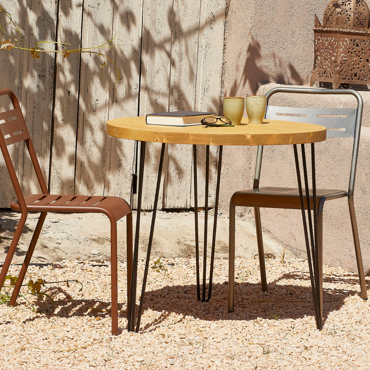 La mesa redonda de madera con patas de horquilla Cuzco está fabricada artesanalmente a mano, una a una, en madera maciza natural 100% ecológica. Con diferentes diámetros y colores de acabado a elegir. Perfecta para colocar en un comedor, salón o cocina, permitiéndote sacar el máximo partido a tu espacio. A conjunto con su versión de mesa de centro, el modelo Kakua. De estilo nórdico para combinar con cualquier estilo decorativo sin que pase desapercibida. Debido a su naturaleza cada pieza es única, presentando un veteado diferente y exclusivo. Patas metálicas negras en forma de horquilla.